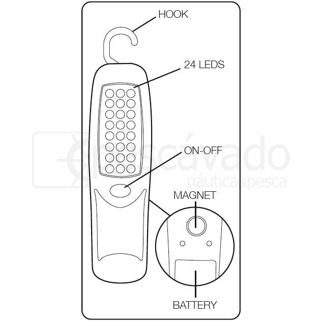 Lanterna de ABS com interruptor à prova de água. Pintura siliconada.