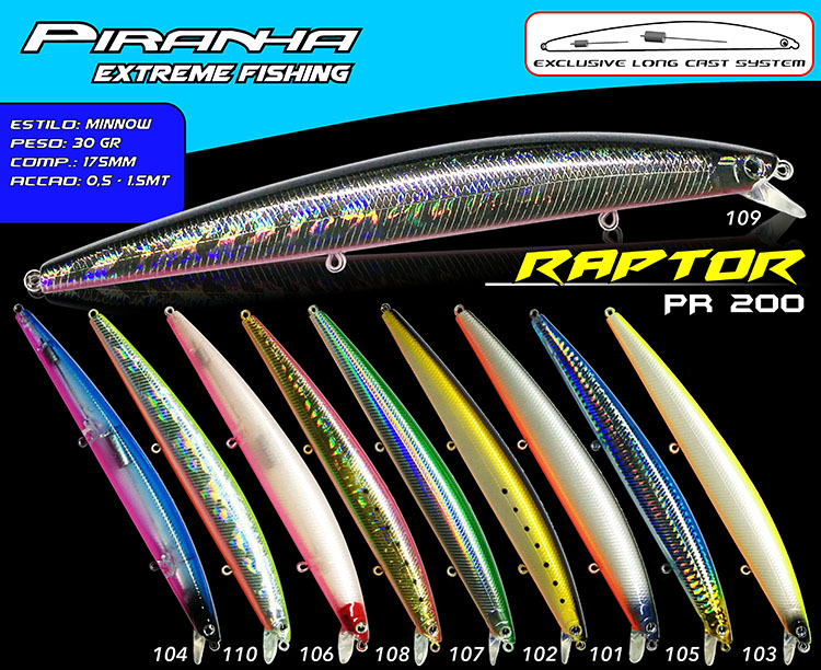 Após anos de experiência a obter os melhores exemplares em água salgada, a PIRANHA/KASHIMA desenvolveu as amostras RAPTOR para a pesca de spinning de costa.