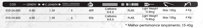 Cana em carbono reforçado com “X-Carbon Yarn” com ação 2/3.