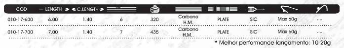 São canas espetaculares, em carbono de alto módulo e com batente inferior em EVA para proteção adicional dos passadores.
