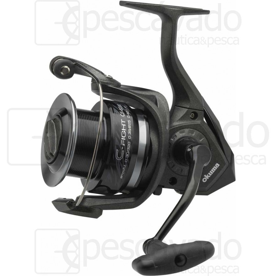 Os carretos de spinning Okuma C-Fight apresentam uma cobertura camo em preto e cinza exclusiva da marca. Estão equipados com corpo em grafite resistente à corrosão, manivela rígida em metal e um rotor de fluxo cíclico que permite tempos de secagem reduzidos quando o carreto fica molhado, diminuindo a corrosão e aumentando a longevidade do carreto.