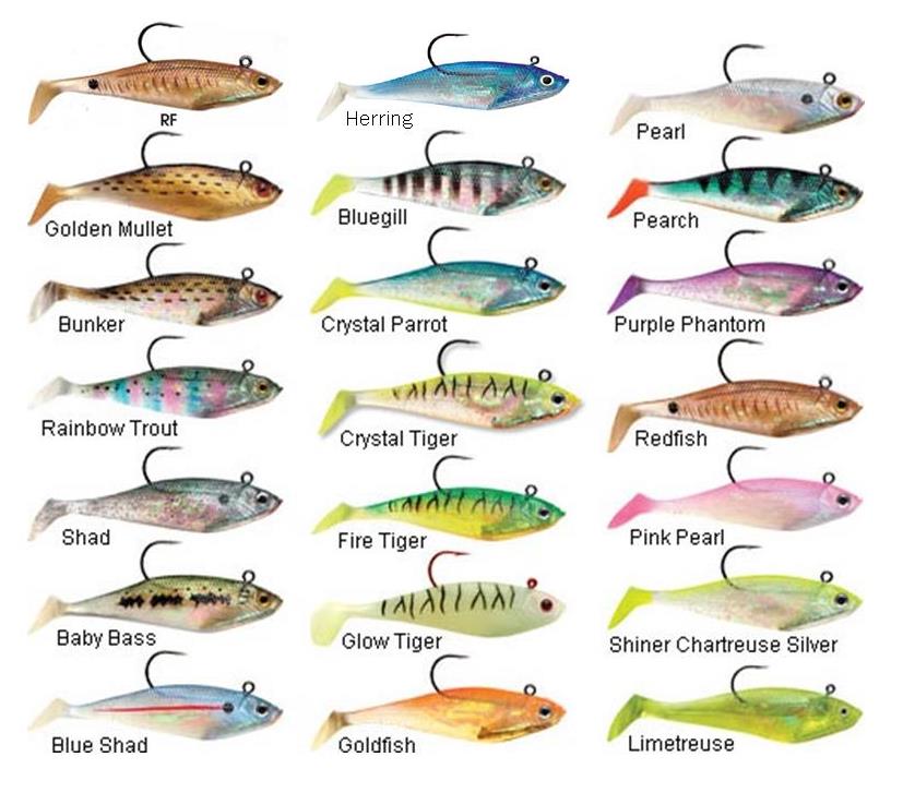 | Cor | Baby Bass, Blue Gill, Herring, Pearl, Perch, Shad, Shiner Chartreuse Silver |